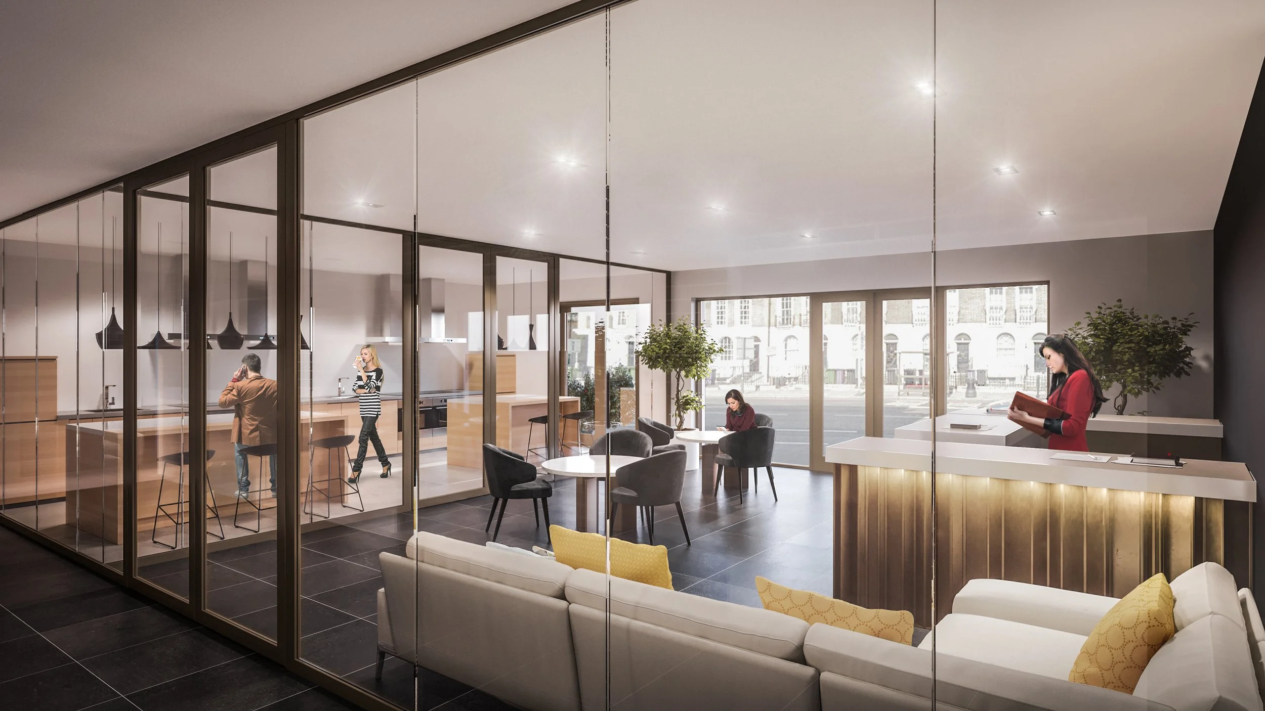 The building forms a transition in the scale of the buildings on Commercial Road, from Our Lady Immaculate Limehouse RC Church to Regents Canal Place.